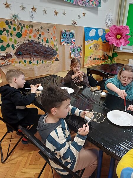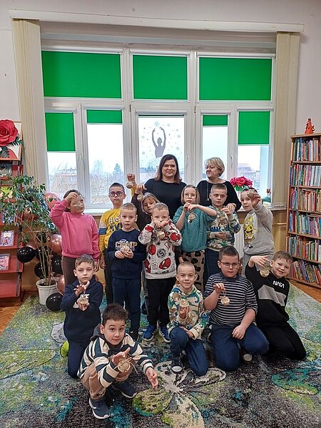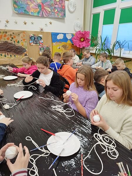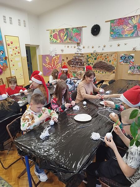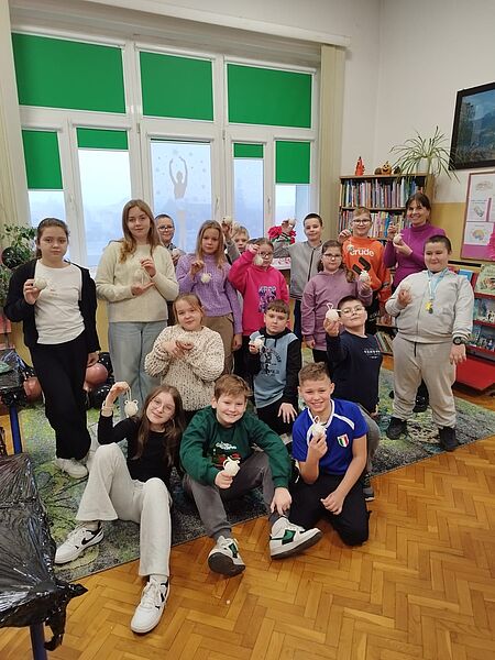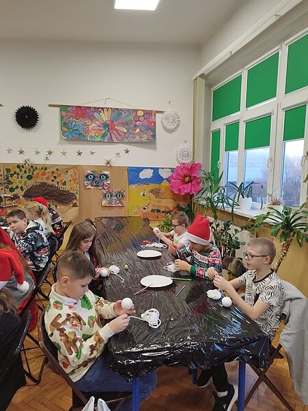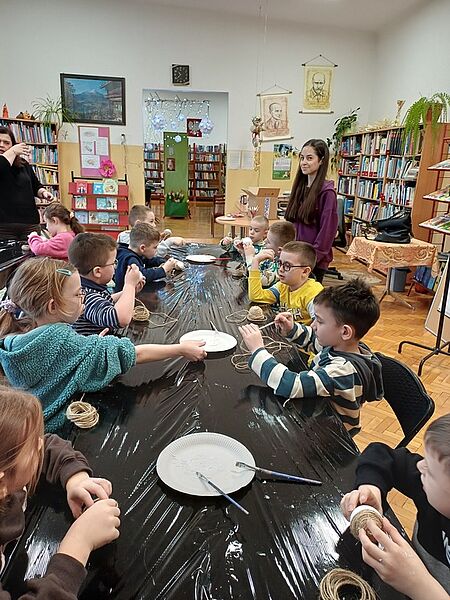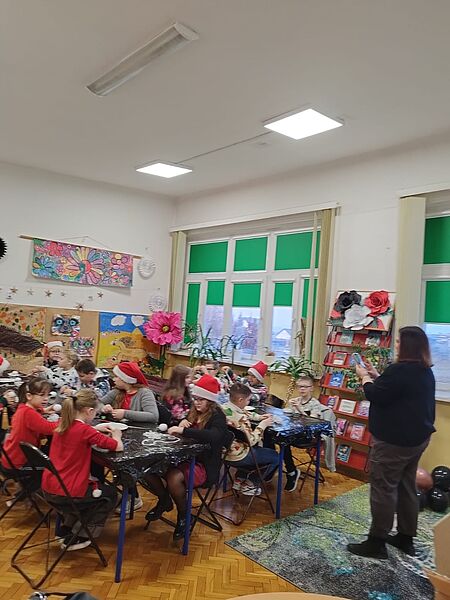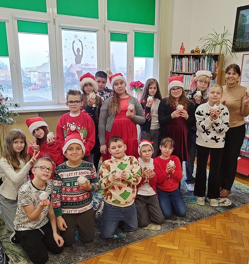 Jak co roku, bardzo chętnie uczestniczyliśmy w świątecznych warsztatach w Bibliotece Publicznej. Niezmiennie uroczym uśmiechem i nowymi pomysłami przywitała nas Pani Katarzyna Ślusarczyk. Tym razem uczniowie klas 1b, 4b i 4c samodzielnie wykonali piękne bombki na choinkę, które będą wyjątkową ozdobą ich domowych drzewek.