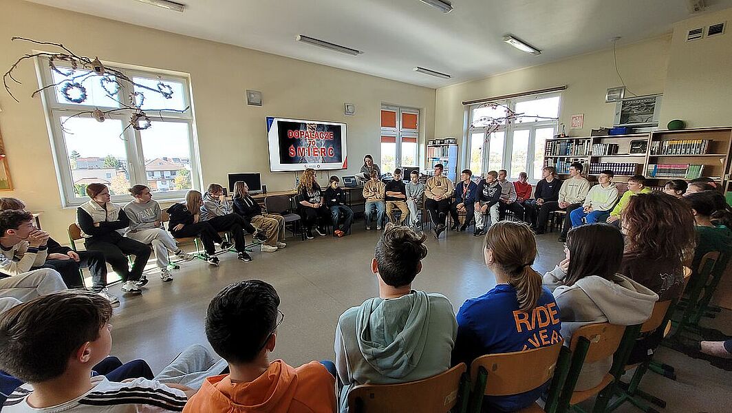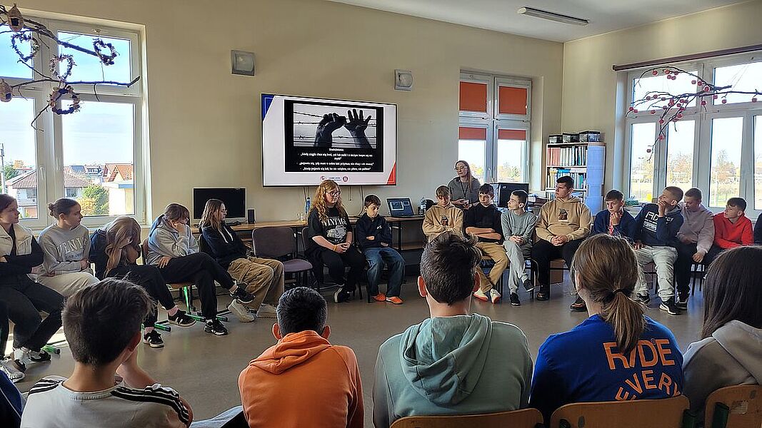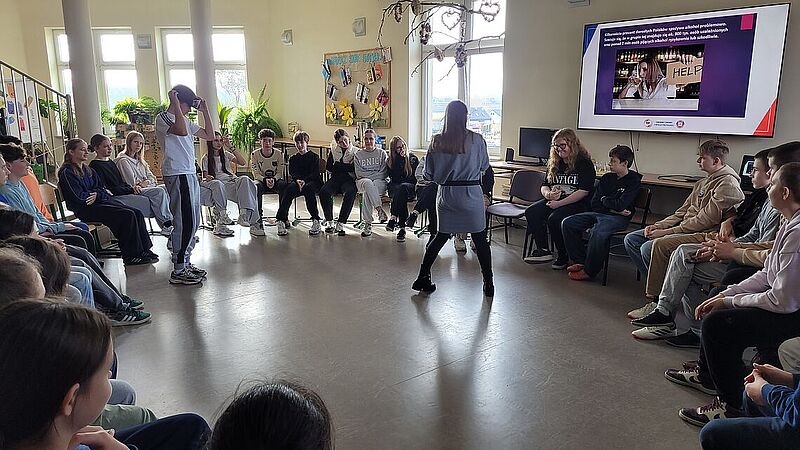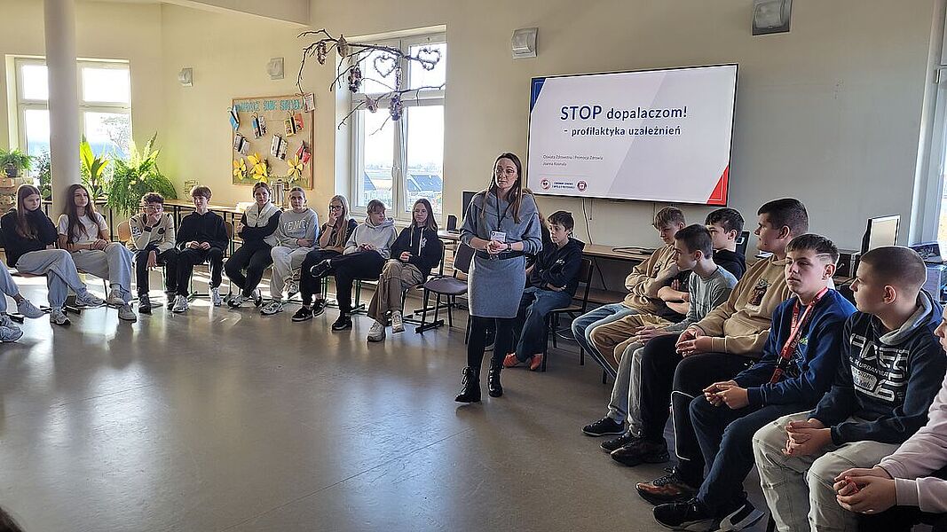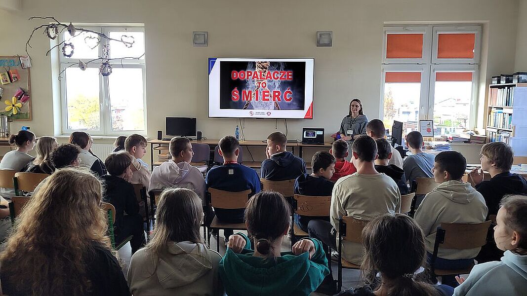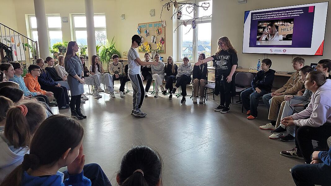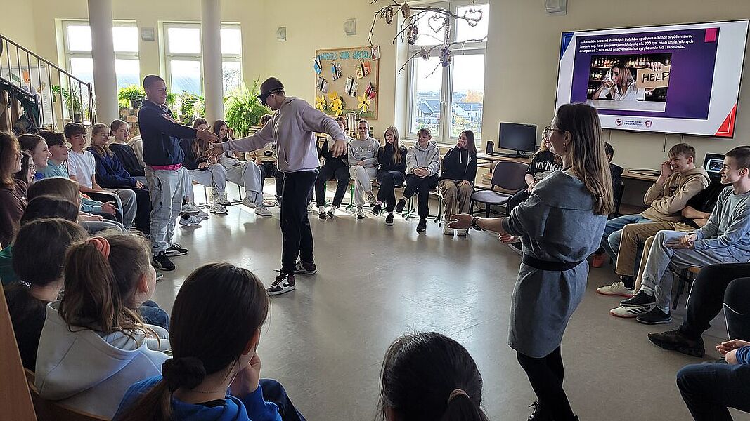 Podczas zajęć uczniowie dowiedzieli się, jak groźne dla zdrowia i życia mogą być dopalacze, alkohol oraz inne środki odurzające. Podczas prelekcji przedstawiono mechanizmy działania dopalaczy i alkoholu, możliwe skutki uboczne, a także omówiono realne przypadki zatruć i konsekwencje prawne związane z ich posiadaniem i używaniem. Warsztaty miały charakter praktyczny – młodzież aktywnie brała udział w rozmowie, zadawała pytania i dzieliła się własnymi spostrzeżeniami. Jednym z najciekawszych elementów zajęć była możliwość skorzystania z alkogogli. To specjalne okulary symulujące wpływ alkoholu na zmysły i koordynację ruchową. Uczniowie mogli przekonać się, jak pozornie proste czynności – np. przejście do kolegi czy przywitanie – stają się trudne, gdy percepcja jest zaburzona. Doświadczenie to wywarło duże wrażenie i stało się punktem wyjścia do rozmowy o zagrożeniach wynikających z podejmowania ryzykownych zachowań pod wpływem alkoholu.
