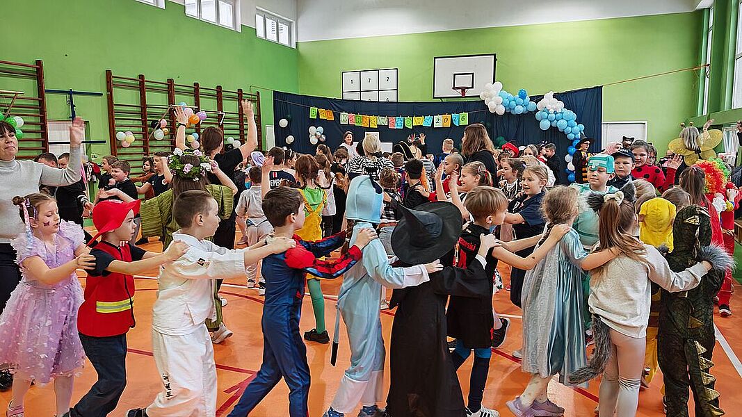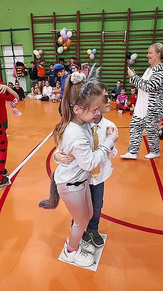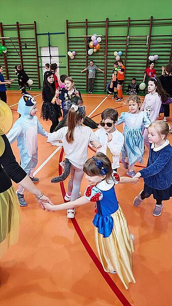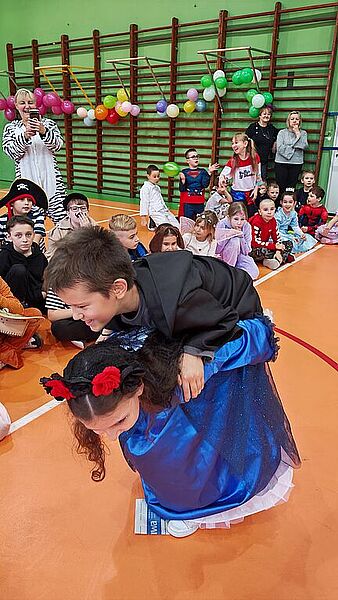 Wspólnie ze swoimi wychowawcami uczniowie klas 1-3 przetańczyli w rytm największych hitów dwie godziny. Piękna dekoracja i świetna muzyka sprawiły, że był to niesamowity bal. Nie tylko taniec zajmował nasze myśli, jak na prawdziwy bal przystało, wybraliśmy króla i królową. Ciekawe konkursy sprawdzające naszą sprawność fizyczną rozbawiły wszystkich obecnych. Okazuje się, że wcale nie tak łatwo tańczyć z balonem, czy zmieścić się w pląsach na małej gazecie