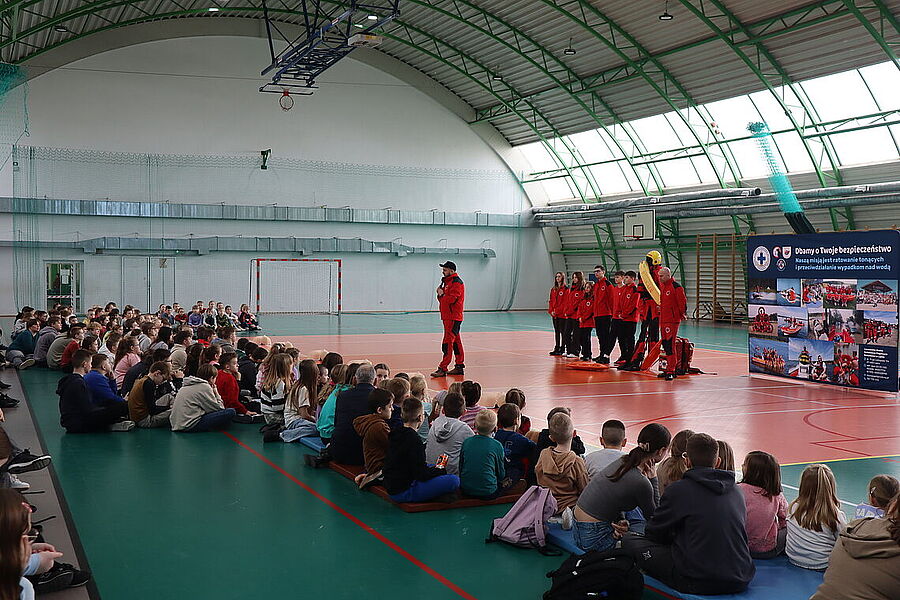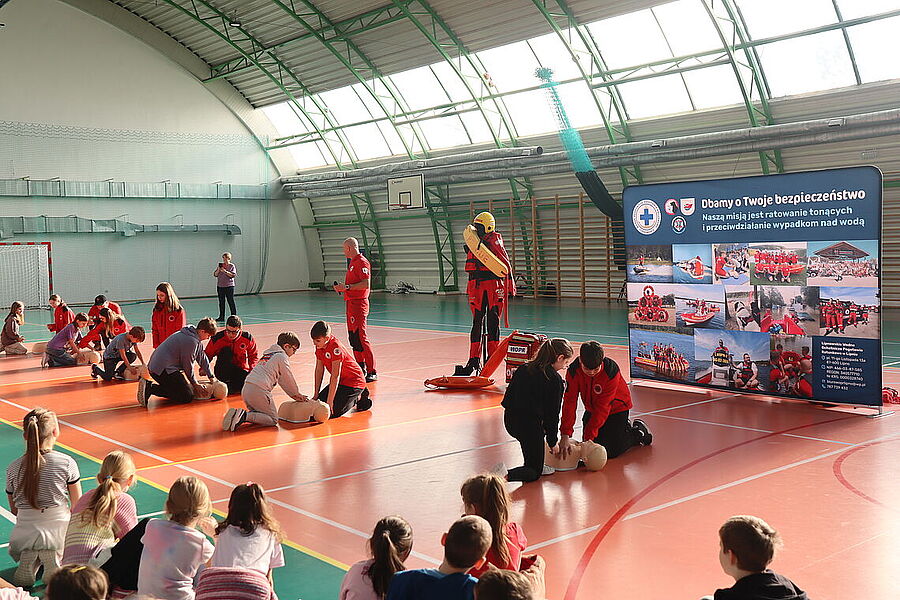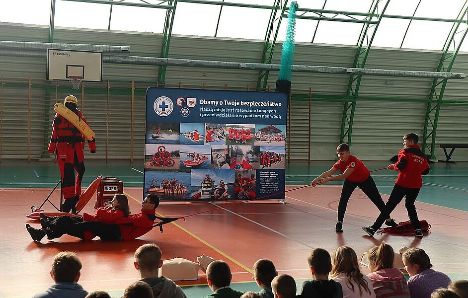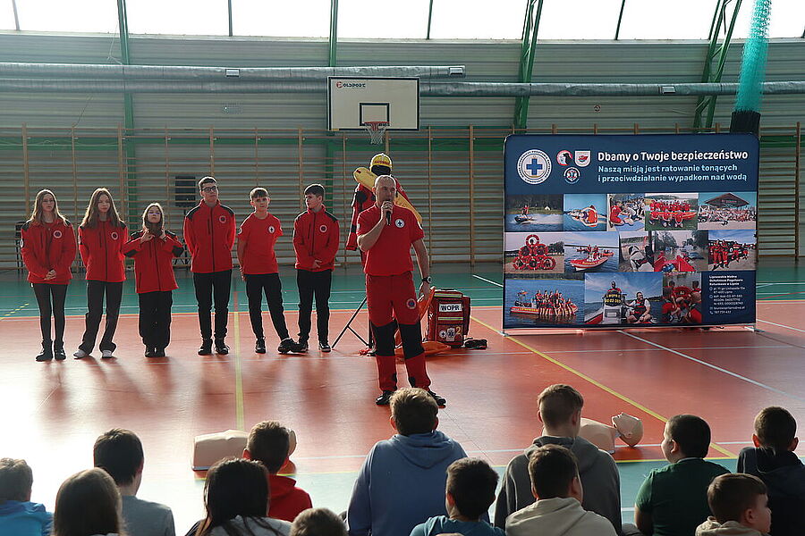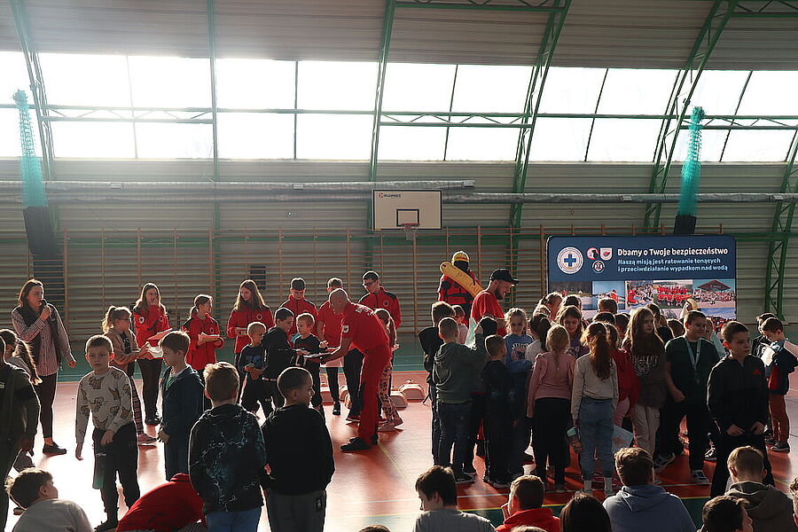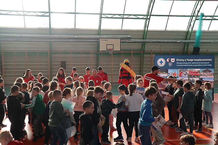 Podczas spotkania uczniowie mieli okazję zapoznać się z zagadnieniami dotyczącymi resuscytacji, udzielania pierwszej pomocy oraz zasad bezpiecznego zachowania się w czasie zimowych ferii. Dzięki praktycznym ćwiczeniom oraz interaktywnym pokazom, dzieci aktywnie uczestniczyły w zajęciach, zadając pytania i angażując się w każdy etap szkolenia. Szczególną radość przyniosło nam zakończenie spotkania, gdy najmłodsi uczniowie, pełni entuzjazmu i wdzięczności, wręczyli ratownikom stos przepięknych obrazków, laurek oraz malowanek z motywami ratowniczymi. To wyjątkowy gest, który pokazał, jak wielkie serca mają nasi uczniowie oraz jak ważna jest współpraca i wzajemne wsparcie w budowaniu bezpiecznej społeczności. Dziękujemy ratownikom z Lipnowskiego WOPR za ich zaangażowanie i profesjonalizm, a uczniom oraz nauczycielom za aktywny udział.