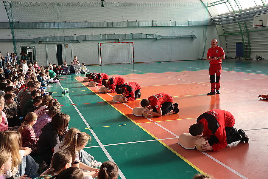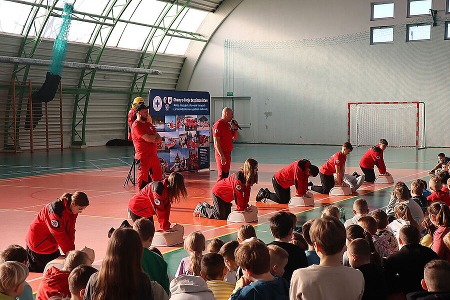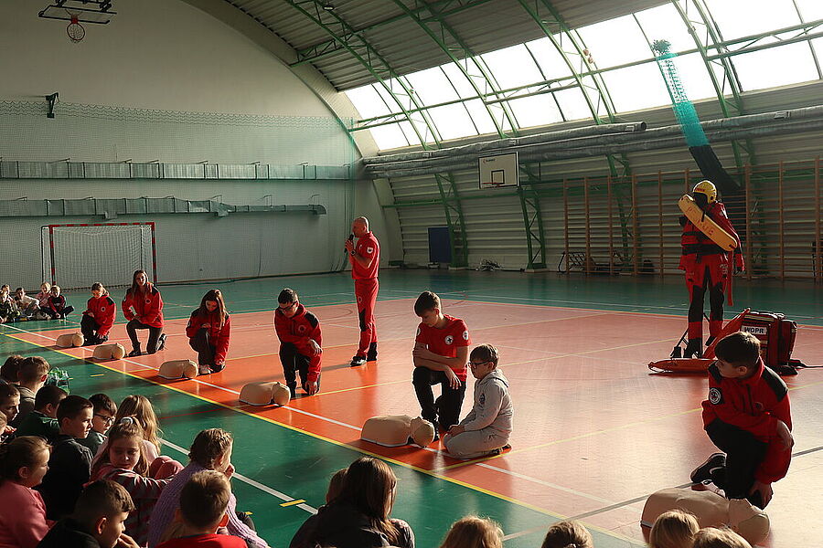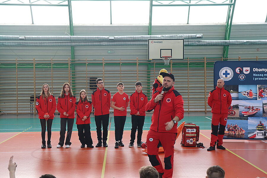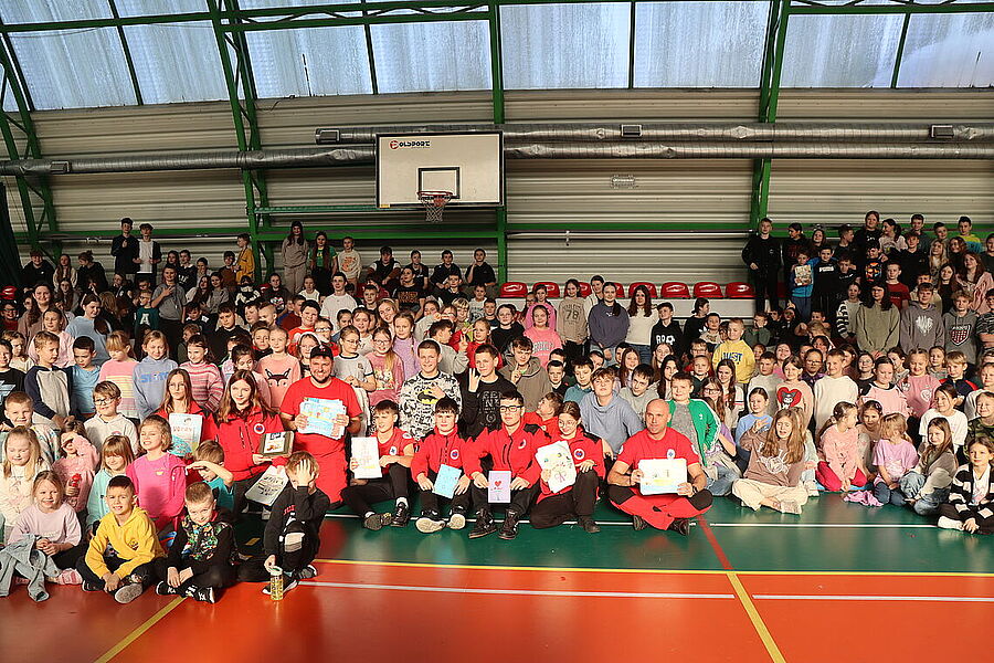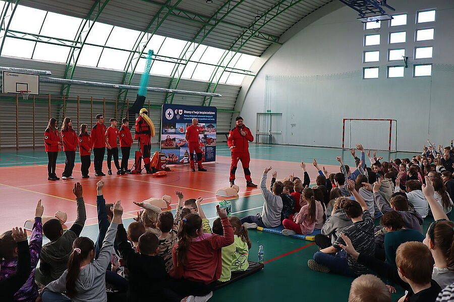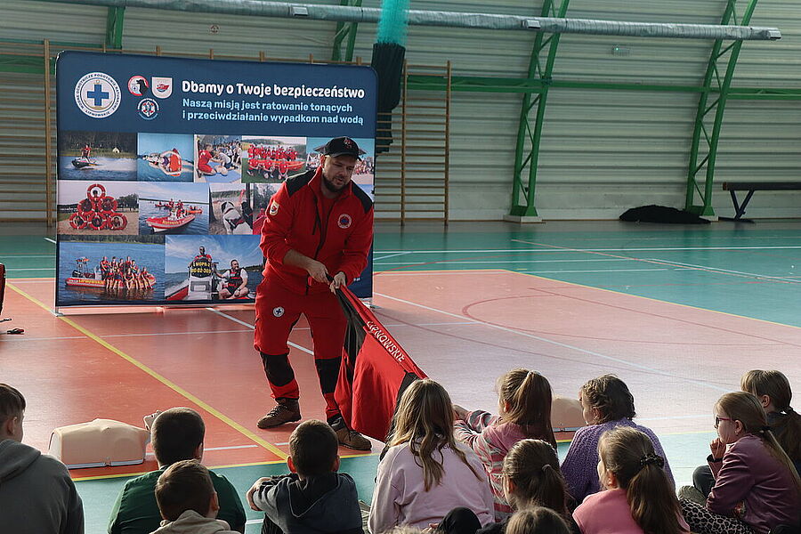 Podczas spotkania uczniowie mieli okazję zapoznać się z zagadnieniami dotyczącymi resuscytacji, udzielania pierwszej pomocy oraz zasad bezpiecznego zachowania się w czasie zimowych ferii. Dzięki praktycznym ćwiczeniom oraz interaktywnym pokazom, dzieci aktywnie uczestniczyły w zajęciach, zadając pytania i angażując się w każdy etap szkolenia. Szczególną radość przyniosło nam zakończenie spotkania, gdy najmłodsi uczniowie, pełni entuzjazmu i wdzięczności, wręczyli ratownikom stos przepięknych obrazków, laurek oraz malowanek z motywami ratowniczymi. To wyjątkowy gest, który pokazał, jak wielkie serca mają nasi uczniowie oraz jak ważna jest współpraca i wzajemne wsparcie w budowaniu bezpiecznej społeczności. Dziękujemy ratownikom z Lipnowskiego WOPR za ich zaangażowanie i profesjonalizm, a uczniom oraz nauczycielom za aktywny udział.
