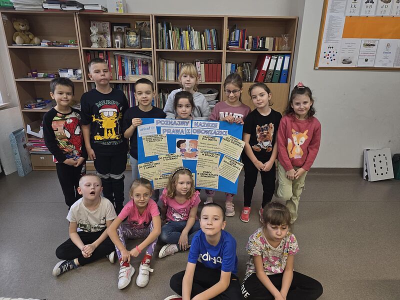 Z ogromną przyjemnością nasza szkoła realizuje po raz kolejny projekt edukacyjny Międzynarodowy Dzień Praw Dziecka z UNICEF 2024. Celem projektu jest okazja, aby z jednej strony w sposób pozytywny i radosny uświadamiać wszystkim, że prawa dziecka są ważne i każde dziecko powinno móc z nich korzystać, z drugiej strony to dzień okazywania solidarności i wsparcia wszystkim tym dzieciom na świecie, których prawa są naruszane. Zapisy zawarte w Konwencji o prawach dziecka są podstawą działalności UNICEF, który podejmuje starania, aby stanowiły one kanon zasad etycznych i standardów międzynarodowych postępowania wobec dzieci. UNICEF stoi na straży praw wszystkich dzieci. O tym wszystkim mogli dowiedzieć się nasi uczniowie podczas zorganizowanych zajęć edukacyjnych. Projekt edukacyjny Międzynarodowy Dzień Praw Dziecka z UNICEF 2024 realizowany jest w formie warsztatów psychoedukacyjnych, prowadzonych przez Panią Aleksandrę Marciniak, Panią Monikę Pilarską oraz wychowawców. Podczas zajęć nauczyciele edukują uczniów i zwracają szczególną uwagę na to, że prawa dziecka dotyczą każdego dziecka, niezależnie od jego płci, wyglądu (np. koloru skóry), posiadanych rzeczy, poglądów, wyznawanej religii, kraju, z którego pochodzi, zdrowia czy niepełnosprawności. Każde dziecko ma prawo czuć się bezpiecznie i nikt nie powinien go krzywdzić. Nie można także krzywdzić siebie nawzajem, a dorośli powinni tego pilnować i reagować w takich przypadkach. Dzieci mają prawo do swobodnego dzielenia się z innymi tym, co myślą i czują, dopóki nie krzywdzi to innych ludzi. Realizację projektu rozpoczęto w dniu 20 listopada i będzie realizowany on do końca I półrocza.