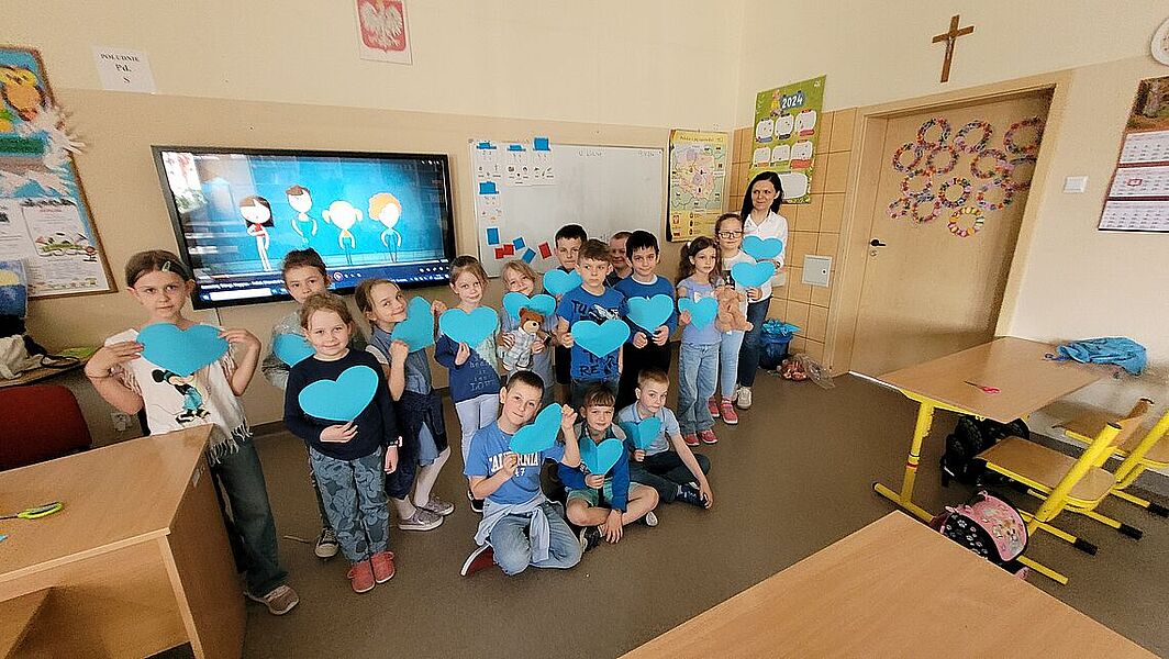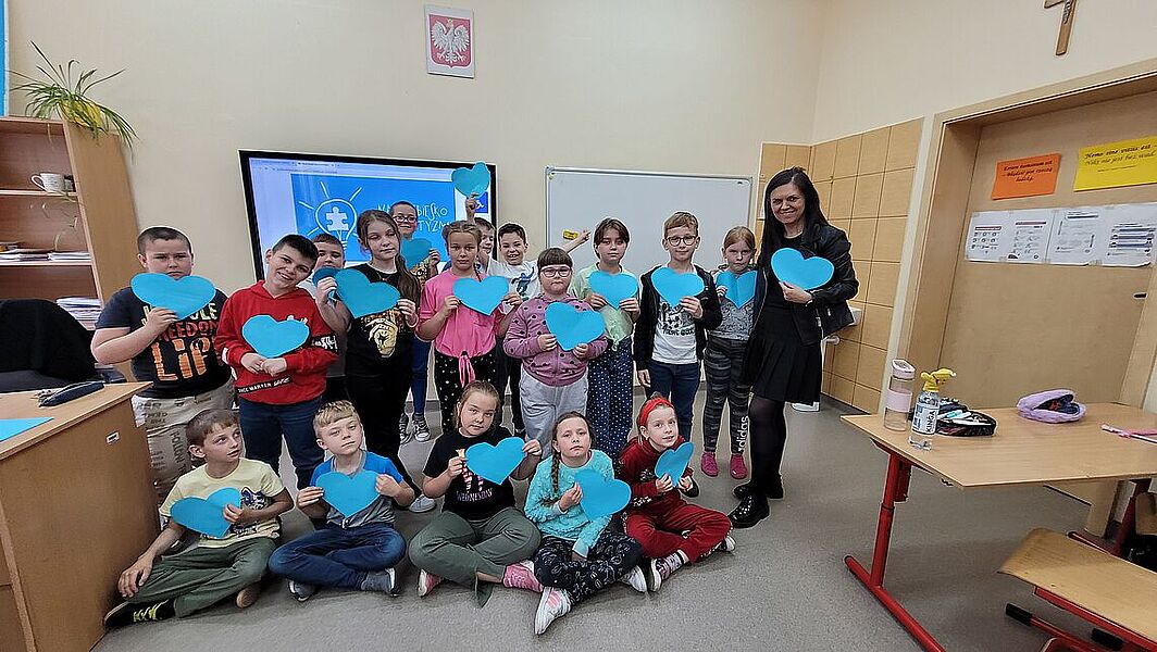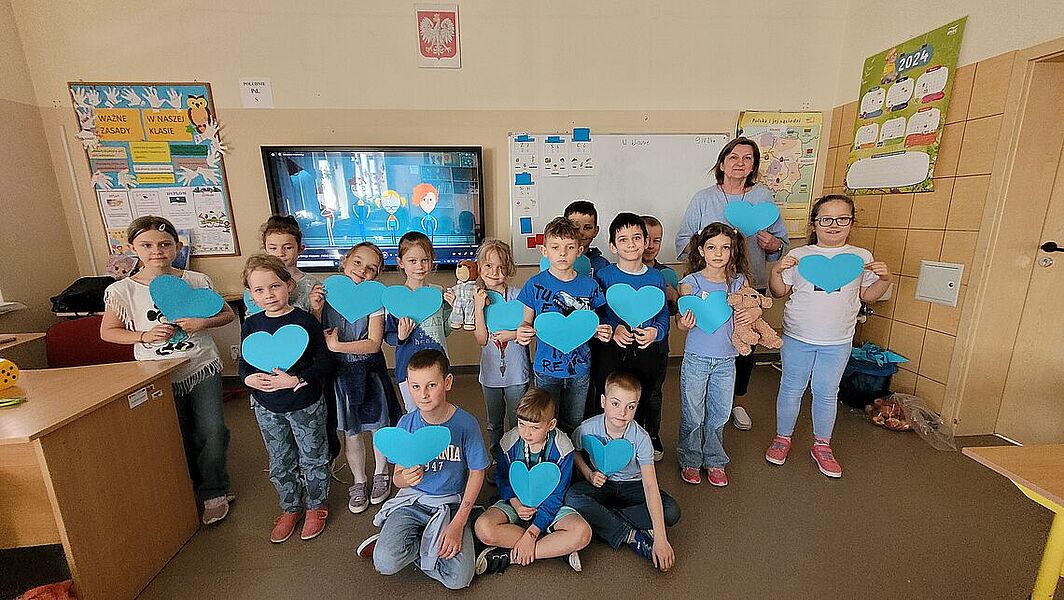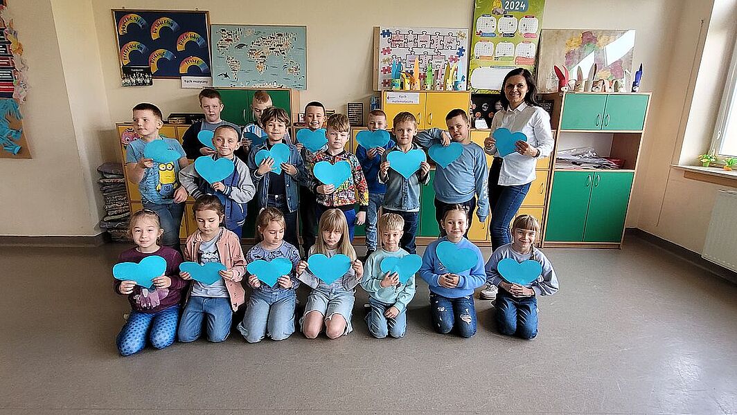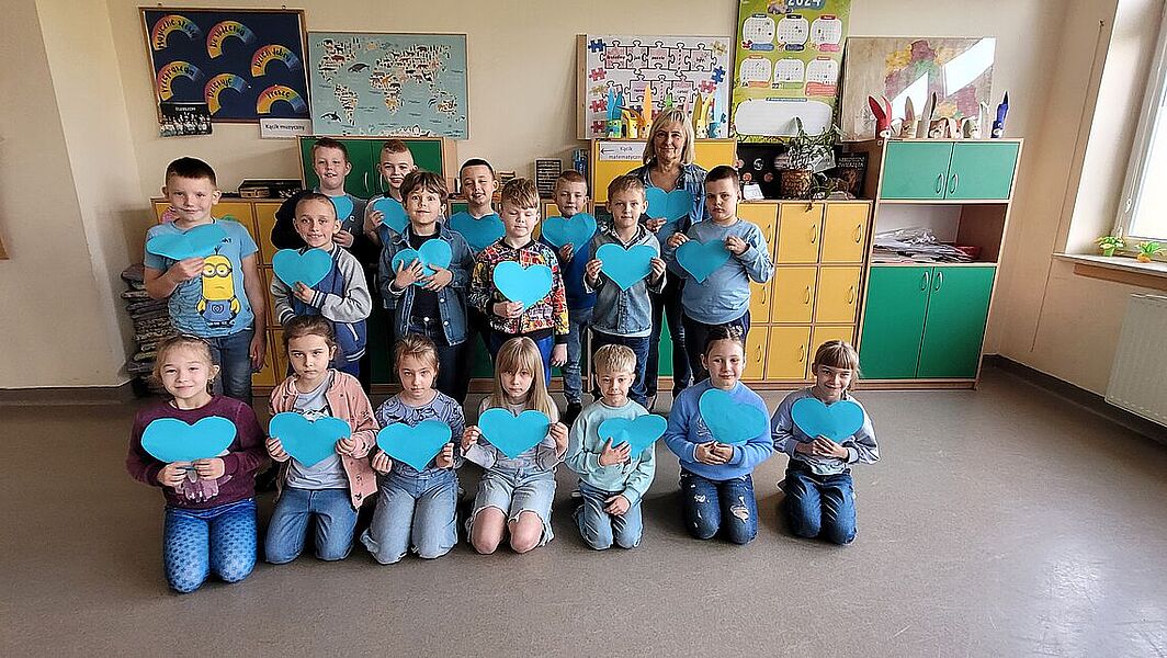 Celem akcji podejmowanych w tym miesiącu jest zwiększenie świadomości społecznej na temat autyzmu oraz zwrócenie uwagi na potrzebę większej empatii i tolerancji dla odmiennych możliwości i potrzeb osób ze spektrum autyzmu. Kampania przyczynia się również do kształtowania właściwych postaw prospołecznych oraz przeciwdziałania wykluczeniu społecznemu. W ramach Ogólnopolskiej Kampanii Społecznej „Na niebiesko dla autyzmu” w naszej szkole uczniowie uczestniczyli w zorganizowanych warsztatach psychoedukacyjnych pt. „Poznaj Marię, dziewczynkę, która lubi mieć plan”. Podczas zajęć uczniowie zapoznali się: z tematyką autyzmu, z charakterystycznymi cechami osób z autyzmem (relacje społeczne, komunikowanie się, zachowania, upodobania osób z autyzmem). Dzieci dowiedziały się czym jest autyzm i dlaczego symbolizuje go kolor niebieski. Uczniowie wykonywali ćwiczenia uświadamiające, jak może czuć się osoba z nadwrażliwością sensoryczną. Ponadto uczniowie obejrzeli filmy edukacyjne o cechach jakie może przejawiać osoba autystyczna. Zwieńczeniem zajęć były wspólnie wykonane serca dla osób z autyzmem. To były bardzo ważne lekcje otwartości, tolerancji i empatii. Warsztaty prowadziła Pani Aleksandra Marciniak, pedagog.
