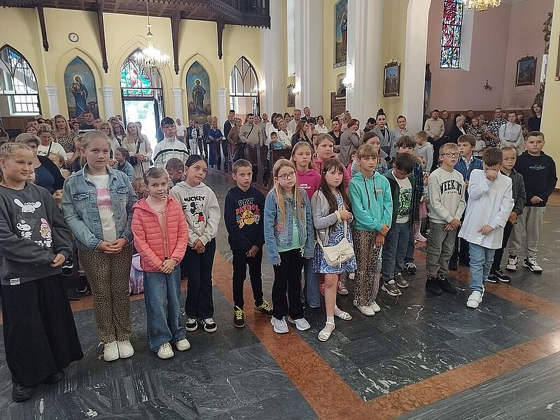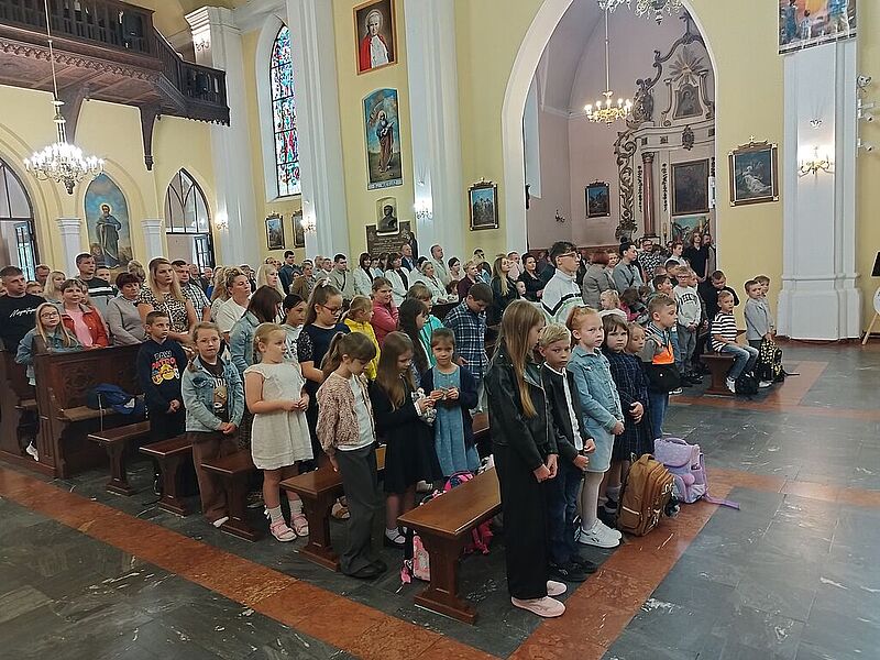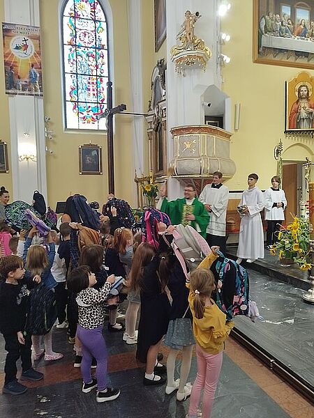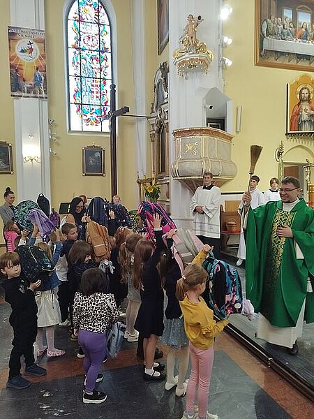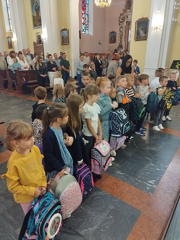 W niedzielę 07 września br. na Mszy św. o godz. 12.00 ks. Kacper uroczyście pobłogosławił dzieci rozpoczynające swoją przygodę z nauką w szkole, poświęcił przyniesione przez nie plecaki, książki i przybory szkolne, które będą służyły dzieciom w czasie nowego roku szkolnego. Życzył pierwszoklasistom, aby każdy dzień w szkole był pełen radości, nowych przyjaźni i niezapomnianych chwil.