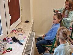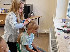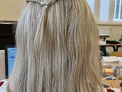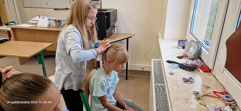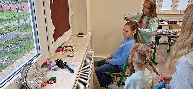 W ramach Tygodnia Kariery w klasie 2A uczniowie mieli okazję bliżej poznać różne zawody, wcielając się w ich role. Jednym z najbardziej kreatywnych i pełnych zabawy dni było otwarcie klasowego salonu fryzjerskiego. Dziewczynki z klasy 2A na chwilę zamieniły się w fryzjerki, tworząc wyjątkowe fryzury swoim koleżankom oraz nauczycielce. Uczniowie z entuzjazmem zaangażowali się w zabawę.Każdy z małych fryzjerów mógł wypróbować swoje umiejętności w stylizacji, używając ozdób do włosów, gumek i spinek. Dzieci z dumą prezentowały swoje fryzury, a atmosfera w klasie była pełna radości i śmiechu. Nie zabrakło także specjalnej klientki – pani nauczycielki, która z przyjemnością pozwoliła dzieciom na stworzenie na jej głowie wyjątkowej fryzury. Była to doskonała okazja do integracji, a uczniowie czuli się bardzo ważni, pełniąc rolę prawdziwych profesjonalistów.