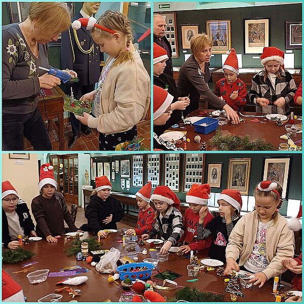 Święta Bożego Narodzenia to szczególny czas. Świeżo ścięta i przystrojona choinka buduje wyjątkowy, radosny klimat. I właśnie dlatego, po raz kolejny uczniowie klasy III a uczestniczyli w warsztatach bożonarodzeniowych w miejscowym muzeum. Zorganizowane 4 grudnia były radosnym przeżyciem i przeniosły nas w nastrój oczekiwania na utęsknione święta. Wszystkim towarzyszył dobry humor, radość tworzenia kolorowych stroików.