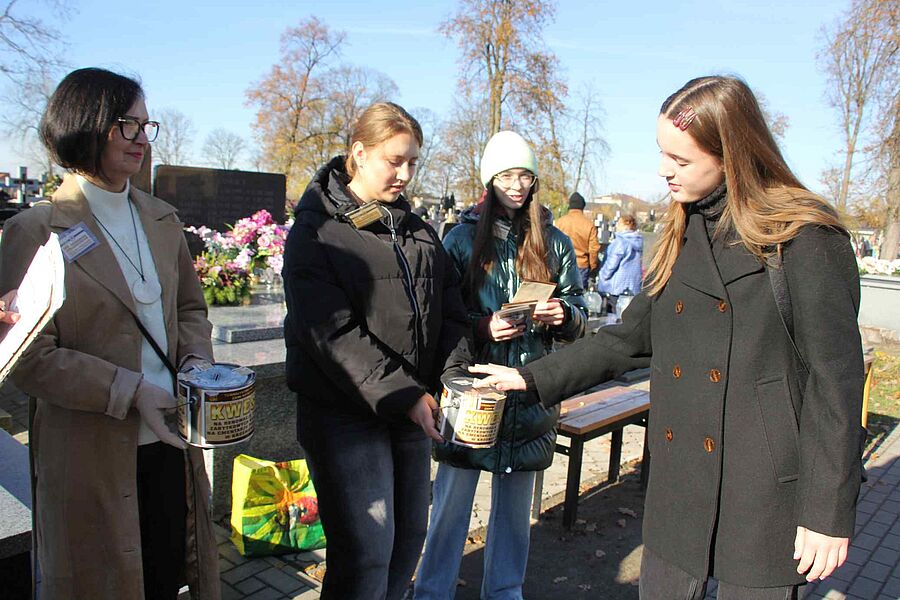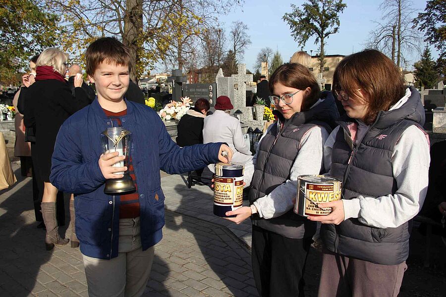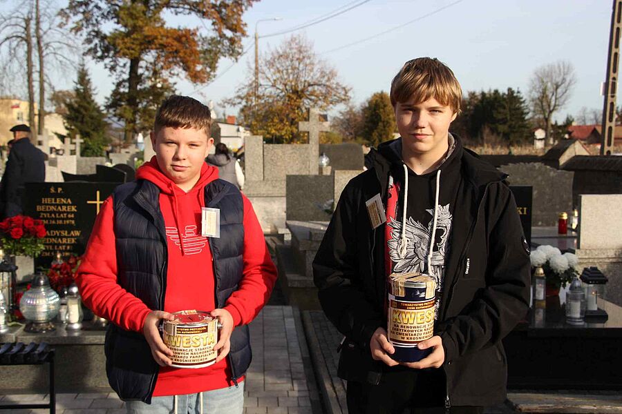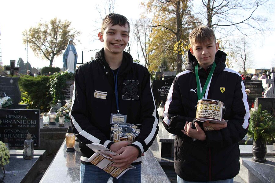 Jak co roku wraz z uczniami kwestowali nauczyciele: pani wicedyrektor Małgorzata Wiśniewska, Małgorzata Przygodzka, Violetta Kotlińska, Aleksandra Grzelak oraz pan Paweł Górnik który w tym roku kwestował na Cmentarzu Powązkowskim w Warszawie. Po raz pierwszy włączyła się do kwestowania Rada Rodziców naszej szkoły, którą reprezentowała pani Anna Mordzak wraz z córką Gabrielą. Organizatorzy dziękują wszystkim wolontariuszom za poświęcony czas i zaangażowanie. Dzięki Wam i szczodrości mieszkańców Krośniewic będzie można odrestaurować kolejny zabytkowy pomnik znajdujący się na naszym parafialnym cmentarzu.