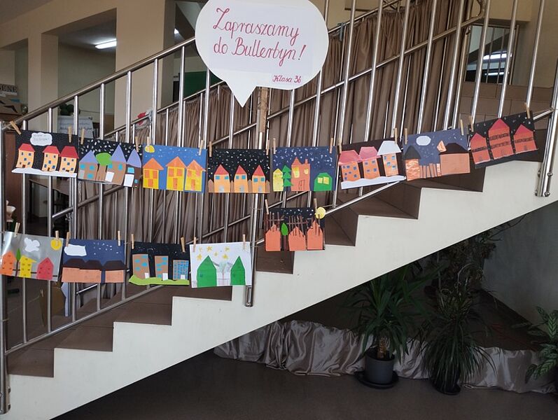 W drugiej części spotkania trzecioklasiści wykonali dekoracje świąteczne – zdobili tekturowe pierniczki, które na pewno na domowych choinkach wyglądały jak prawdziwe, choć nie kusiły zapachem. Uczniowie przynieśli do biblioteki piękne prace przedstawiające domy bohaterów powieści, toteż efektem ich wizyty jest wystawa ,,Zapraszamy do Bullerbyn!”, ale zamiast wioseczki liczącej trzy budynki okazale prezentuje się kolorowe miasto.